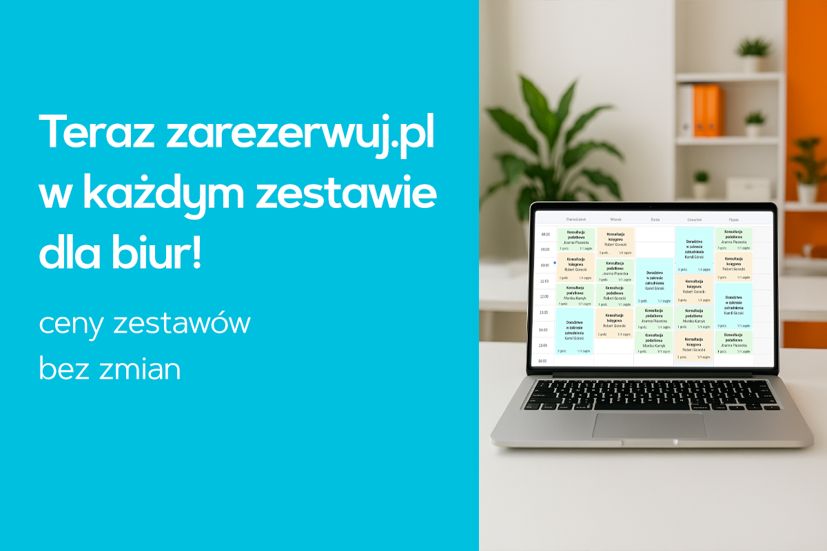 Teraz zarezerwuj.pl w każdym zestawie dla biur! Ceny zestawów bez zmian