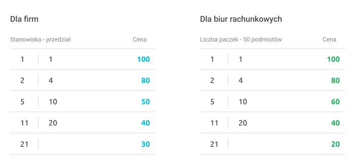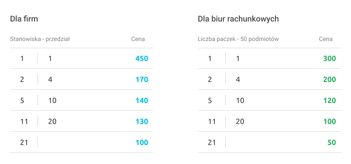 Cena jest liczona za każde 50 podmiotów, które biuro może obsługiwać w ramach zarejestrowanych licencji czy też rozszerzeń.
