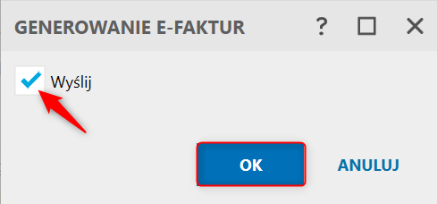 2. Zaznaczyć Wyślij, następnie kliknąć OK.
