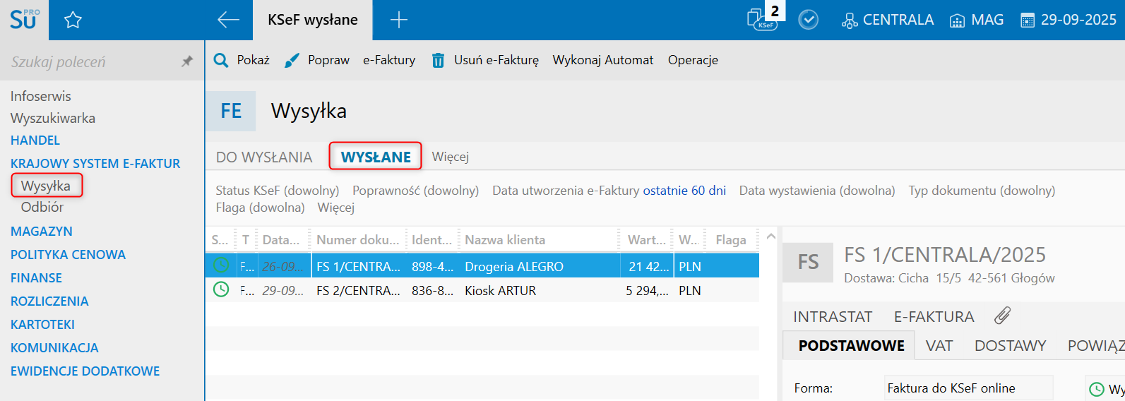 Wysłane dokumenty będą widoczne w module Krajowy System e-FakturWysyłka, na zakładce Wysłane.
