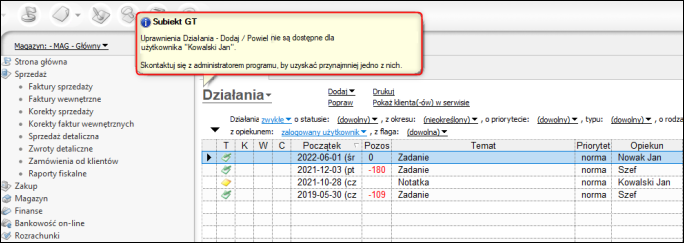 InsERT GT – Jak zablokować użytkownikowi możliwość dodawania nowych działań?