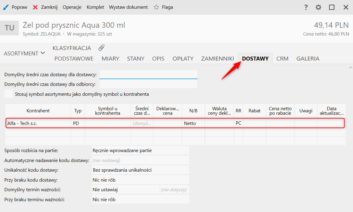 Dodatkowo program automatycznie doda do asortymentu Dostawcę danego towaru, co pozwoli na szybszą identyfikację asortymentu.