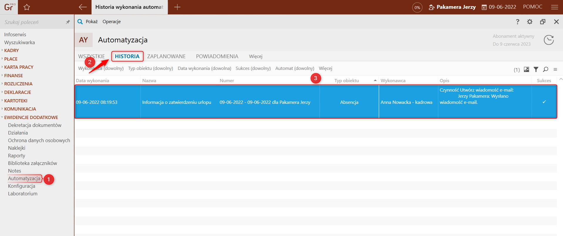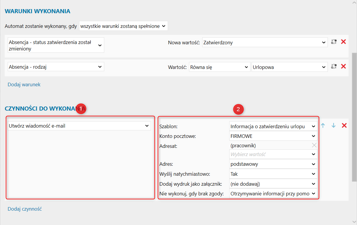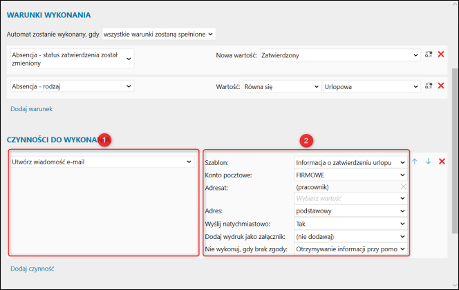 Gratyfikant nexo – Powiadomienie pracownika o zatwierdzeniu absencji urlopowej za pomocą modułu Automatyzacja