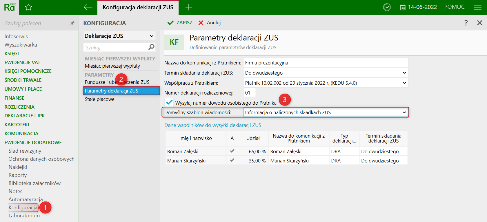 Rachmistrz i Rewizor nexo – Jak wysłać do wspólników firmy wiadomość e-mail z informacją o naliczonych składkach i terminie zapłaty?