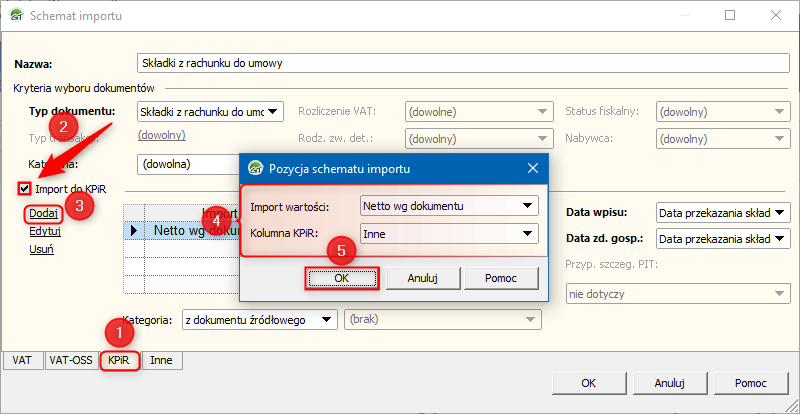 Rachmistrz GT – Konfiguracja przykładowego schematu importu składek z rachunku do umowy