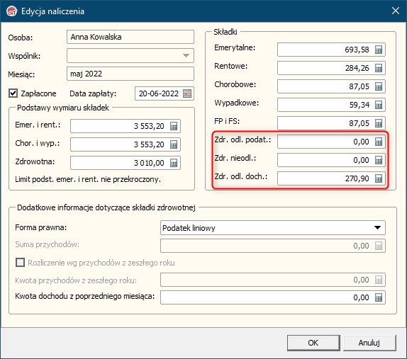Rachmistrz i Rewizor GT – Odliczanie składki zdrowotnej od dochodu w przypadku podatku liniowego od lipca 2022 r.
