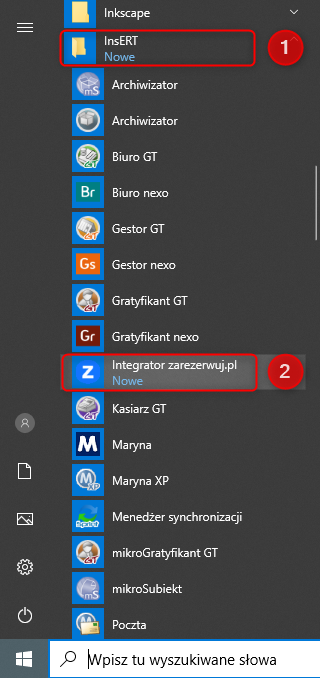1. Należy odszukać menu Start – Programy lub Wszystkie aplikacje (w zależności od wersji systemu Windows) – InsERT – Integrator zarezerwuj.pl.