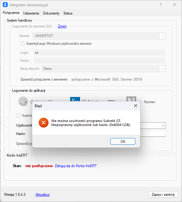 zarezerwuj.pl – Jak poprawnie ustalić połączenie z systemem InsERT GT w Integratorze?