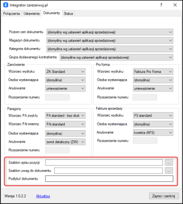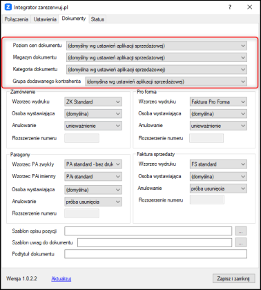 • Magazyn dokumentu – określa magazyn, który będzie się pojawiał na dokumentach sprzedaży pochodzących z integratora;