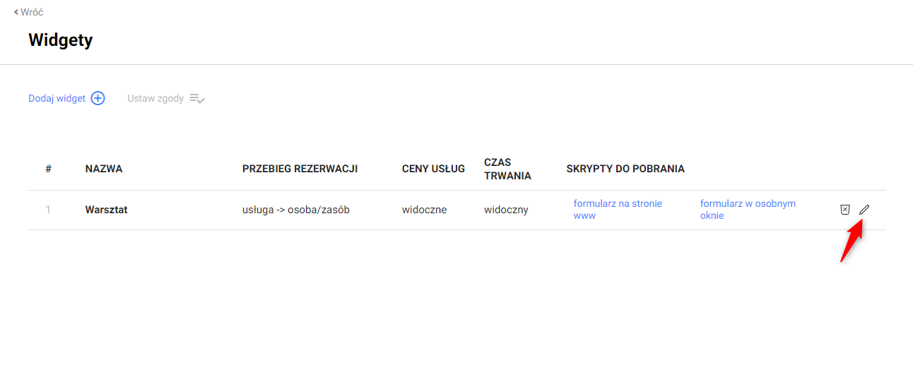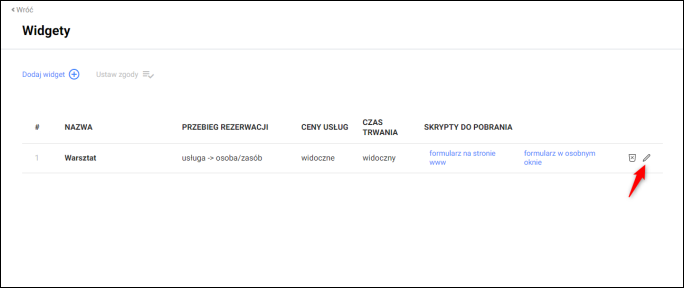 2. Kliknąć ikonę „ołówka” w celu edycji wcześniej stworzonego widgetu.