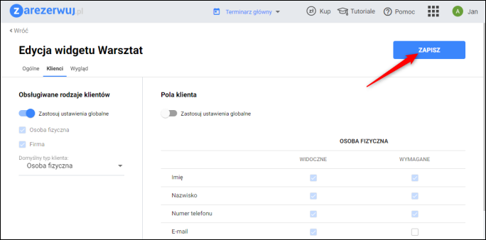 zarezerwuj.pl – Jak skonfigurować parametry klientów w widgecie rezerwacji?