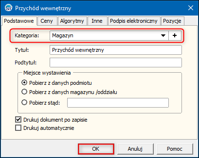 Subiekt GT – Jak ustawić domyślną kategorię przychodu wewnętrznego?