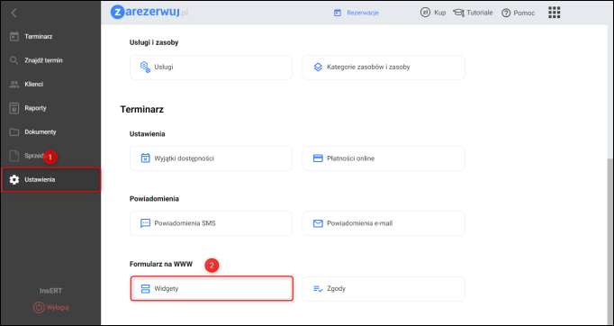 1. Przejść do modułu Ustawienia – Widgety.