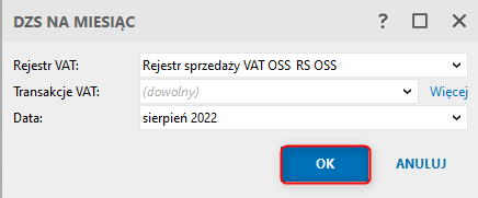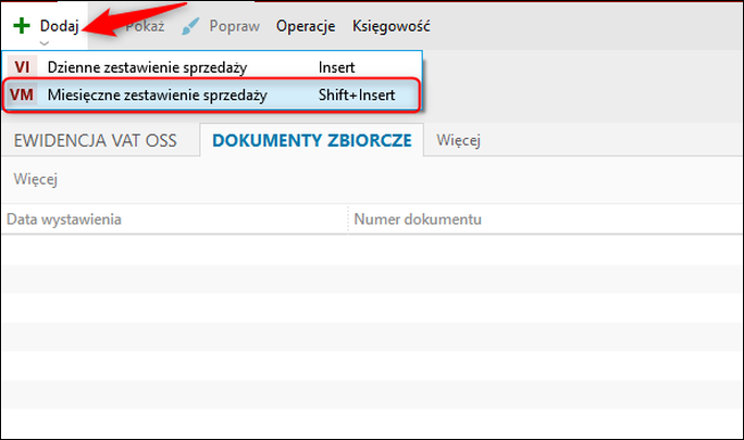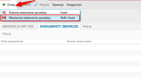 Aby wygenerować zbiorczy dokument miesięcznej sprzedaży VAT OSS, należy: