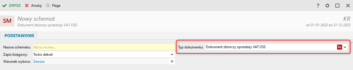 Nowy typ dokumentu dostępny jest w schematach dekretacji.