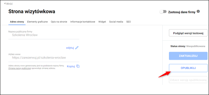 W celu publikacji zmian należy kliknąć przycisk Opublikuj.