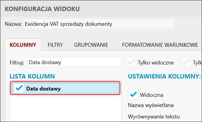 Rewizor nexo – Jak do widoku Ewidencji VAT sprzedaży dodać kolumnę Data dostawy?