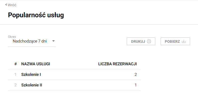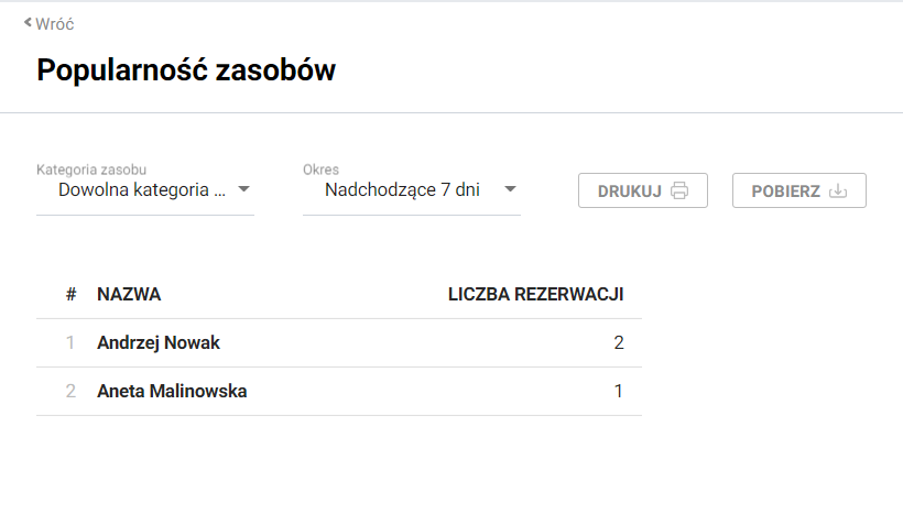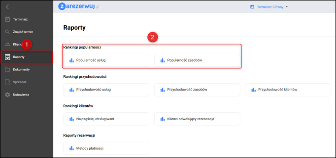 W module Raporty można znaleźć zestawienia i statystyki, które pomogą lepiej zarządzać firmą. Można tu sprawdzić m.in. popularność usług i zasobów w wybranym przedziale czasowym ich przychodowość, a także rankingi stałych klientów, najczęściej odwołujących rezerwacje, czy też preferowane przez nich metody płatności.