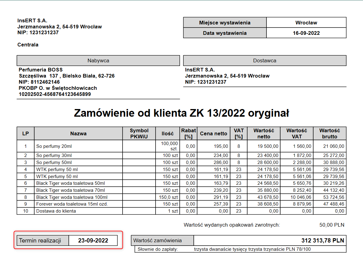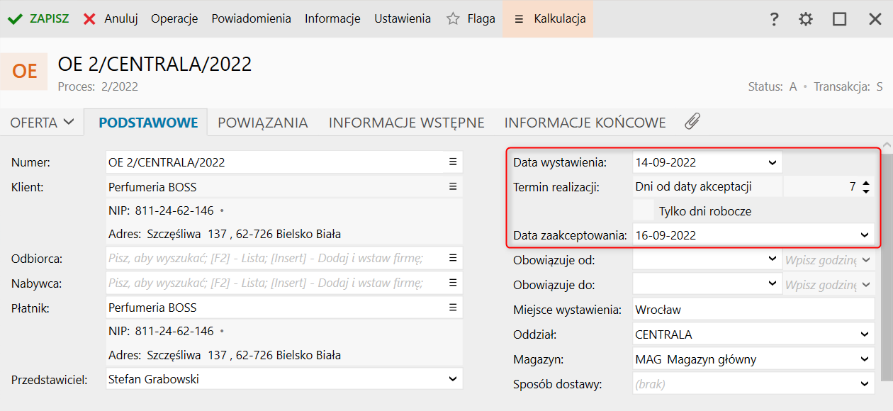 Po zapisaniu i zaakceptowaniu oferty przez klienta, termin realizacji będzie liczony od daty jej zaakceptowania.