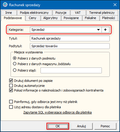 2. W oknie, które się wyświetli wybrać domyślną kategorię. Zmiany zapisać przyciskiem OK.