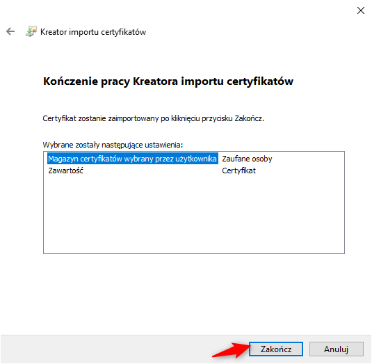 7. Sfinalizować pracę kreatora importu przyciskiem Zakończ.