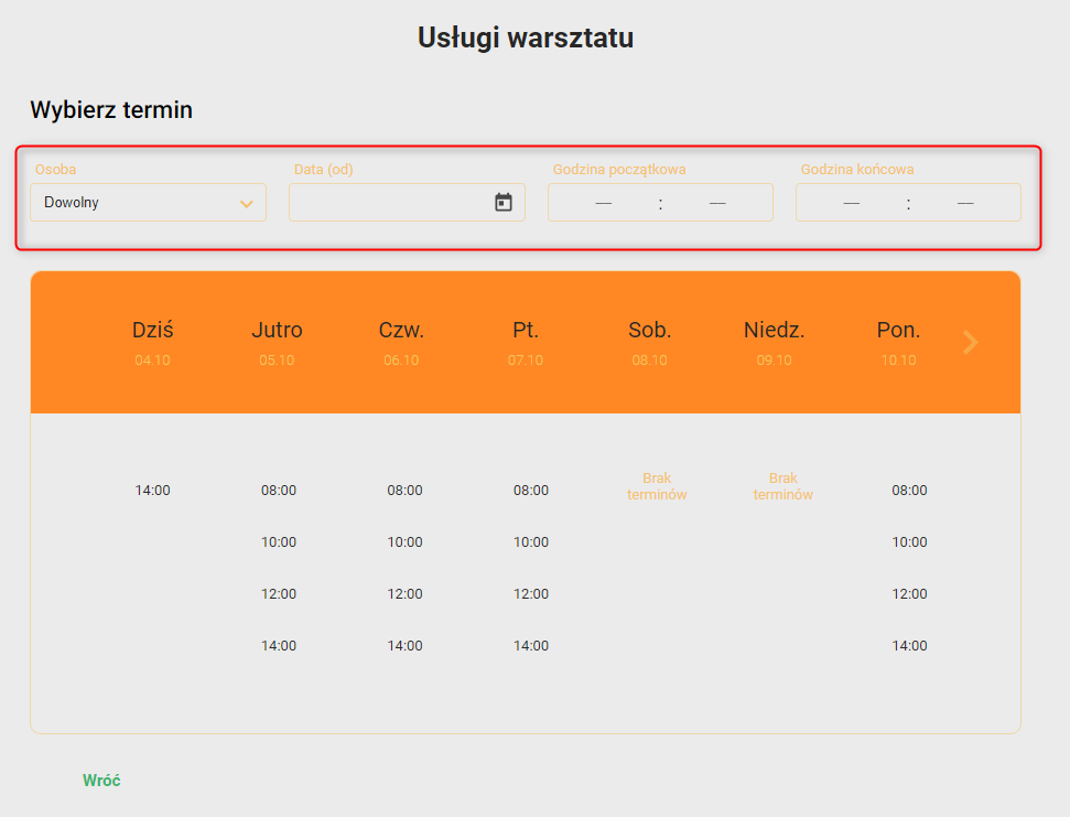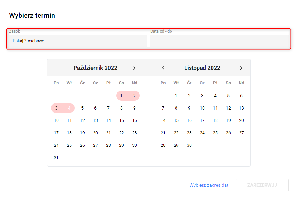 zarezerwuj.pl – Ukrywanie filtrów na formularzu rezerwacji