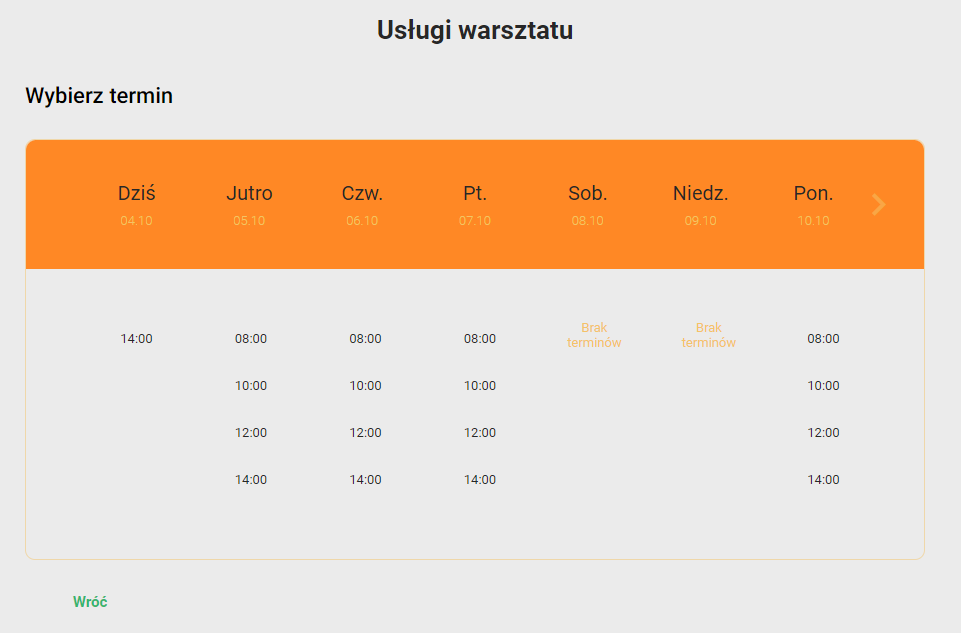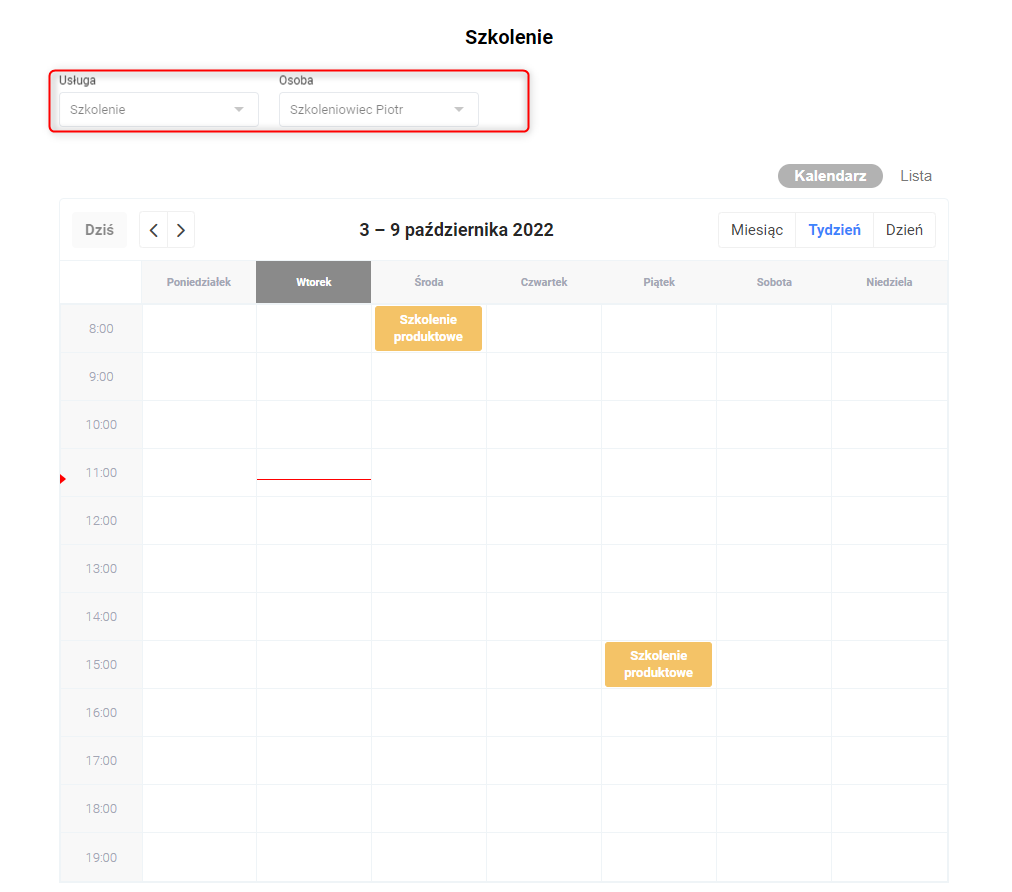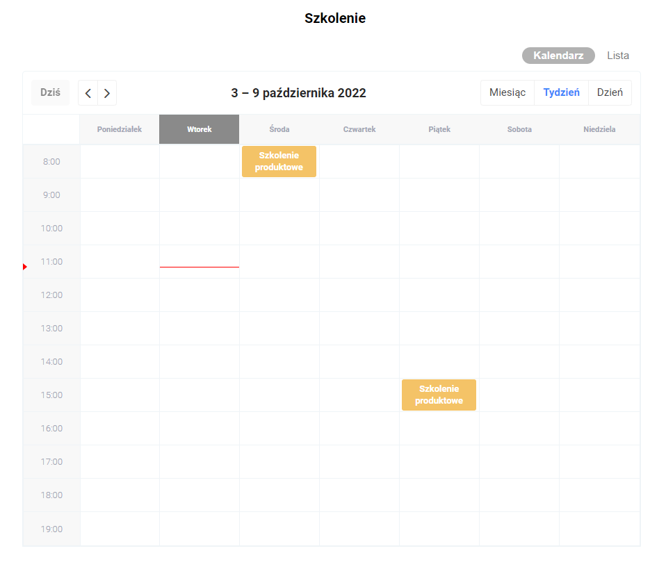 Terminarz można przełączyć, wybierając przycisk dostępny w nagłówku strony.