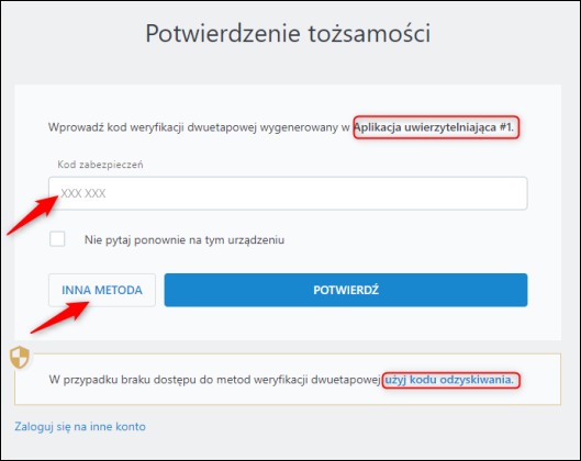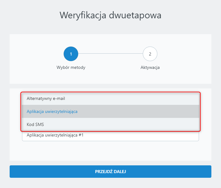 Istnieje również możliwość zmiany domyślnej metody weryfikacji dwuetapowej,