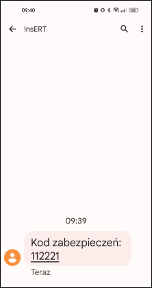 W polu kod zabezpieczeń wpisać kod z otrzymanej wiadomości SMS na wcześniej podany numer telefonu.