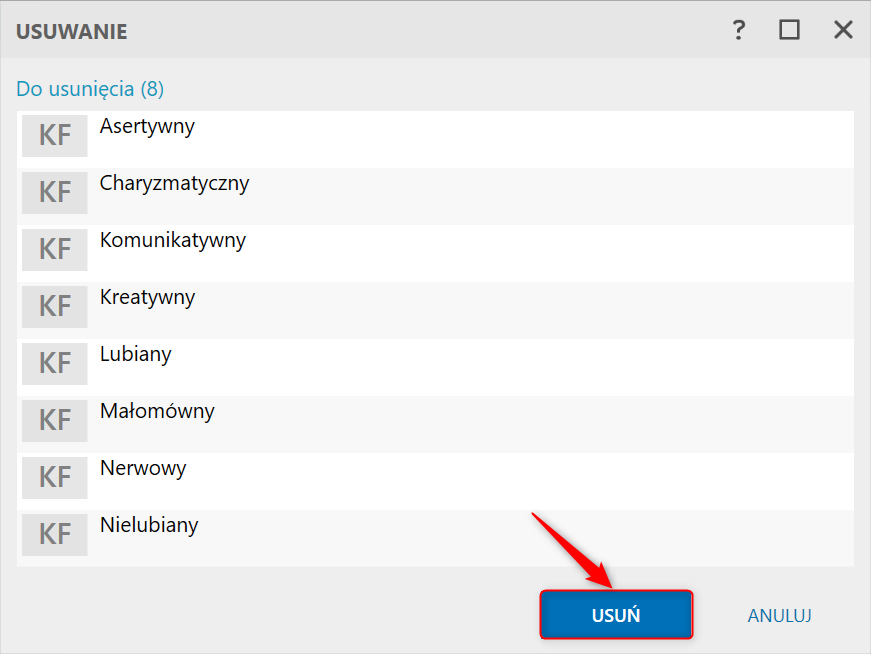 2. Zweryfikować listę pozycji do usunięcia i potwierdzić przyciskiem Usuń​.