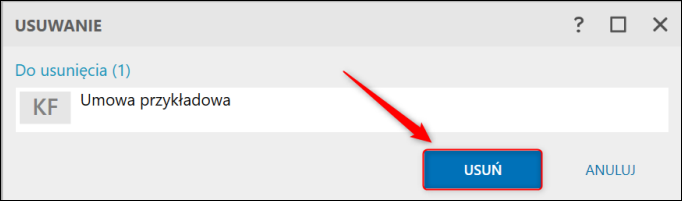 2. Zweryfikować pozycję do usunięcia i potwierdzić przyciskiem Usuń.