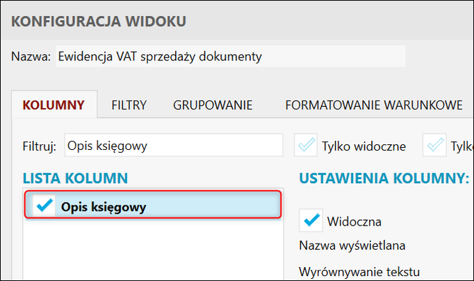 Rewizor nexo – Jak do widoku Ewidencji VAT sprzedaży dodać kolumnę Opis księgowy?