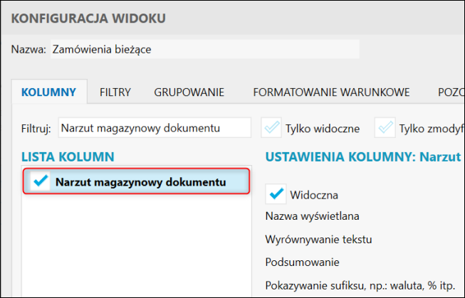 Subiekt nexo – Jak do widoku zamówień dodać kolumnę Narzut magazynowy dokumentu?