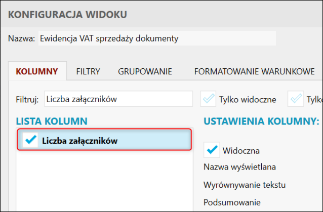 Rewizor nexo – Jak do widoku Ewidencji VAT sprzedaży dodać kolumnę Liczba załączników?