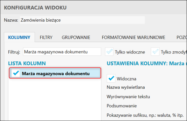 Subiekt nexo – Jak do widoku zamówień dodać kolumnę Marża magazynowa dokumentu?