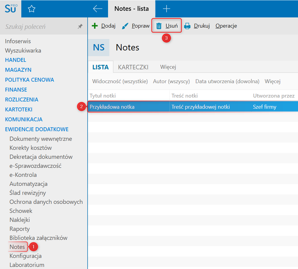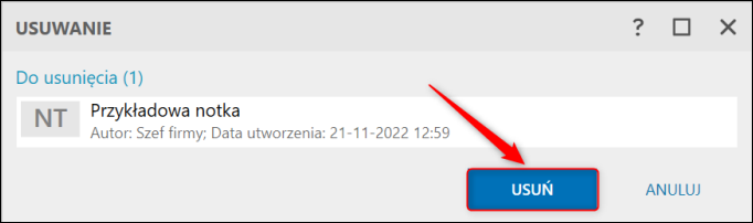 Programy linii InsERT nexo posiadają możliwość usuwania stworzonych notatek. Aby to wykonać, należy: