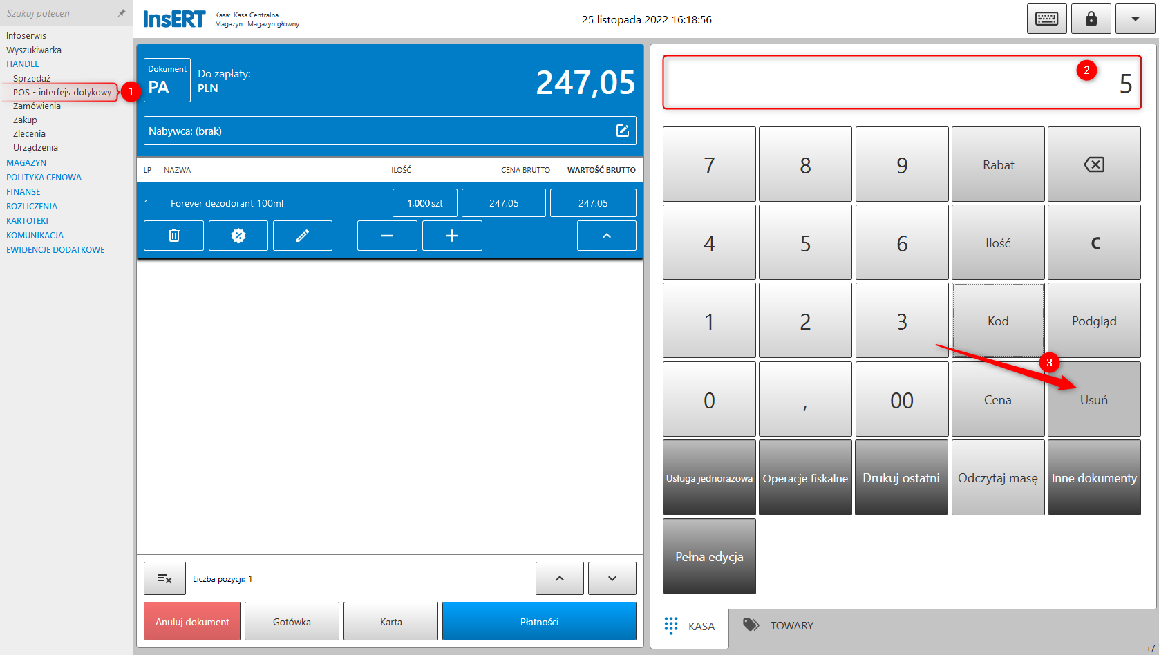 Subiekt nexo – Jak usunąć pozycję po kodzie PLU lub kodzie kreskowym w POS - interfejsie dotykowym?