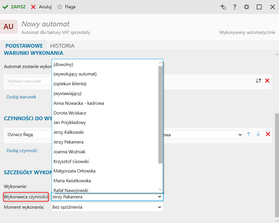 InsERT nexo – Kim jest wykonawca czynności w module Automatyzacja?