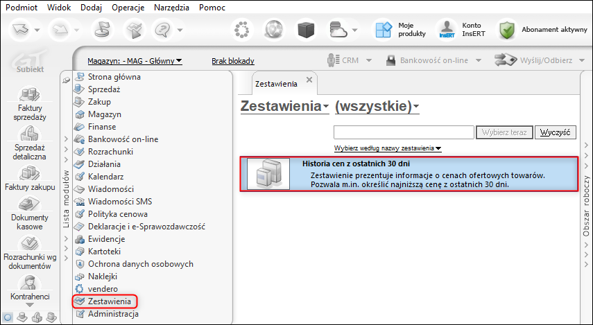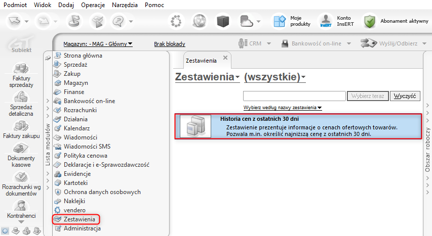 Subiekt GT – Jak włączyć zapisywanie cen towarów z ostatnich 30 dni?