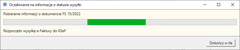 Na ekranie wyświetlone zostanie okno informujące o statusie wysyłki.