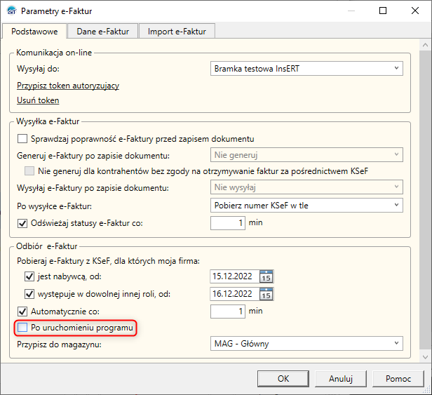 4. Opcjonalnie zaznaczyć ustawienie Po uruchomieniu programu decydujące o tym, czy program będzie sprawdzać, czy podatnik otrzymał nowe dokumenty w momencie uruchomienia programu.