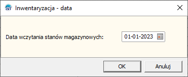 2. Określić datę wczytania stanów magazynowych, a zmiany zatwierdzić przyciskiem OK.