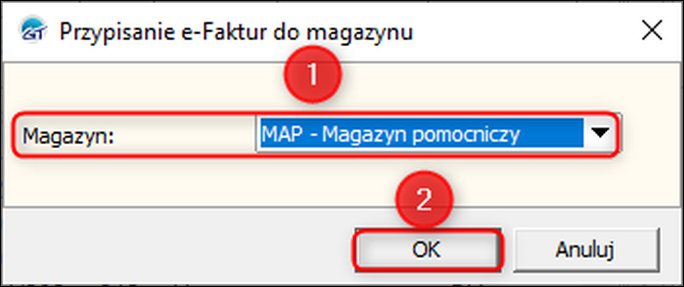 Subiekt GT – Jak przypisać odebraną e-Fakturę do magazynu?