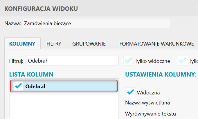 Subiekt nexo – Jak do widoku zamówień dodać kolumnę Odebrał?