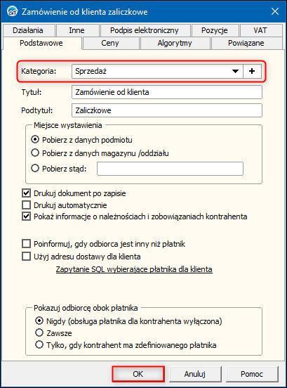 Subiekt GT – Jak ustawić domyślną kategorię zamówienia zaliczkowego od klienta?