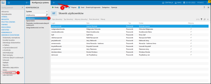 Wraz z udostępnieniem obsługi Krajowego Systemu e-Faktur (KSeF) dodano uprawnienia umożliwiające dostosowanie konfiguracji każdemu z pracowników, decydując, jakie operacje może wykonywać. W tym celu należy: