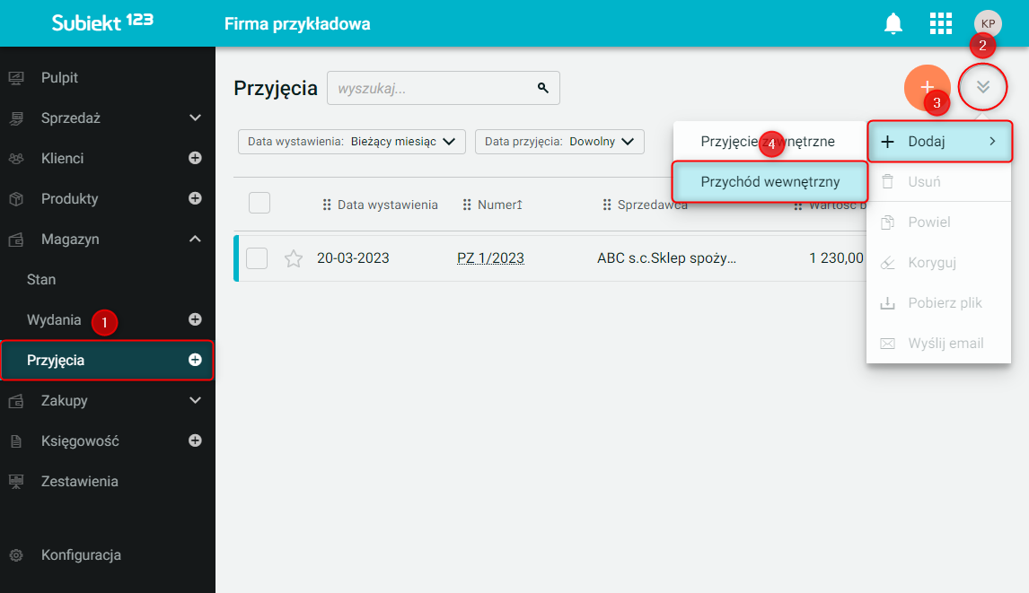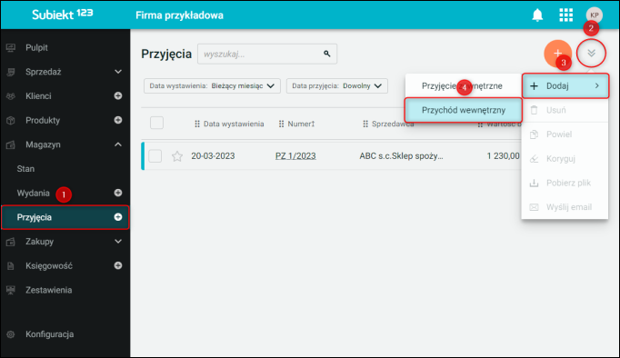 Subiekt 123 – Jak dodać dokument Przychodu wewnętrznego?