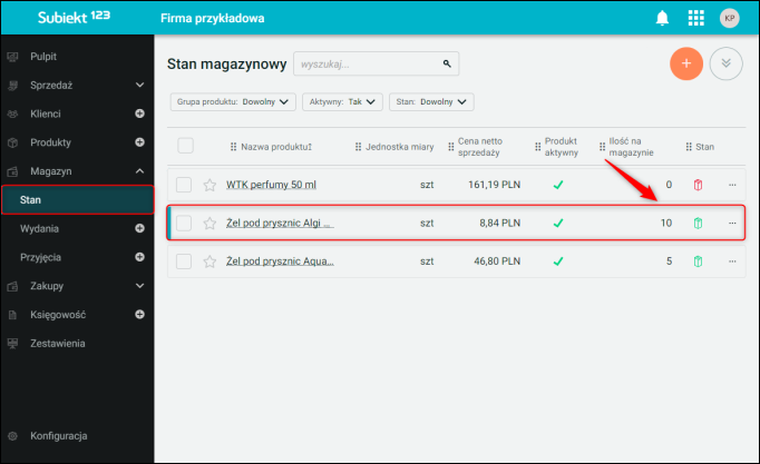 4. Zmiana stanu magazynowego będzie widoczna w module Stan.