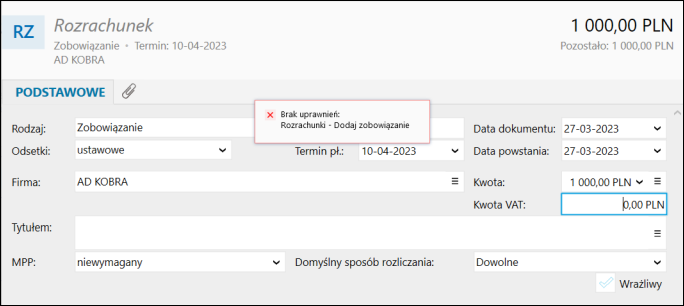 InsERT nexo – Jak zablokować pracownikowi możliwość dodawania rozrachunków typu zobowiązanie?