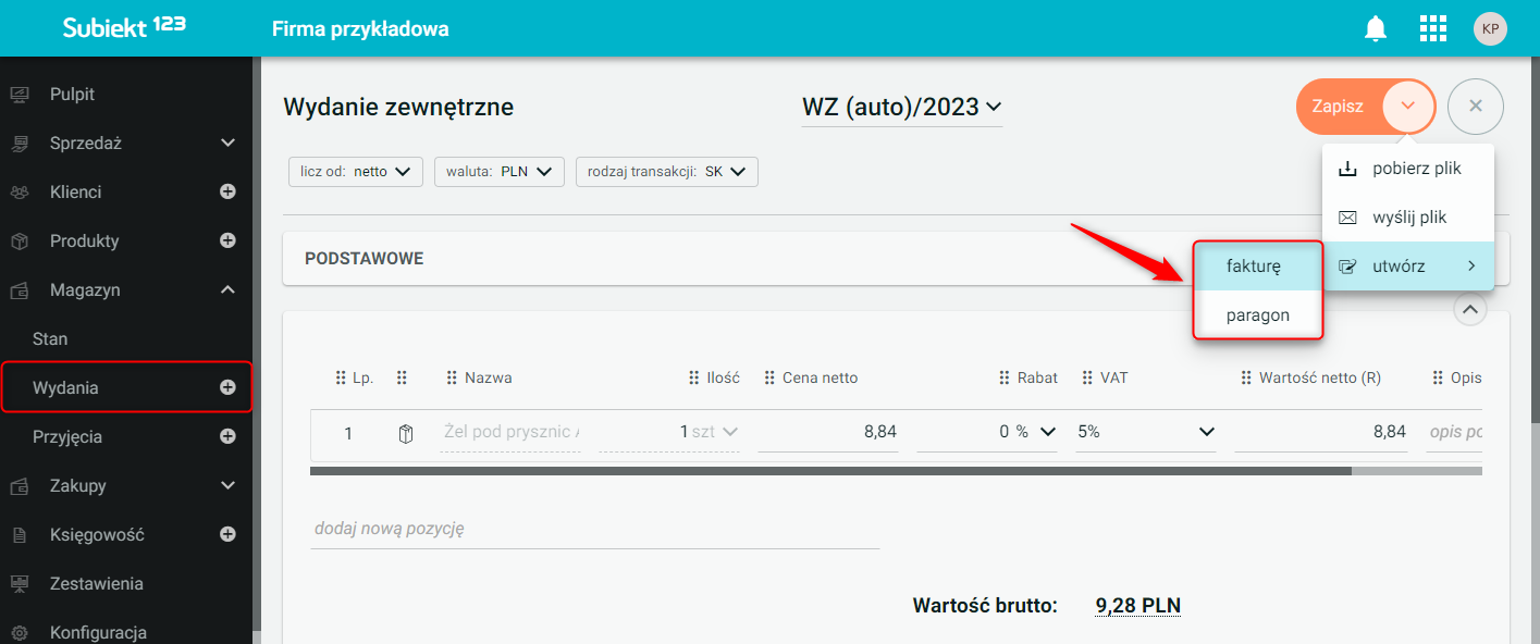 Subiekt 123 – Jak utworzyć dokument sprzedaży na podstawie wydania zewnętrznego?